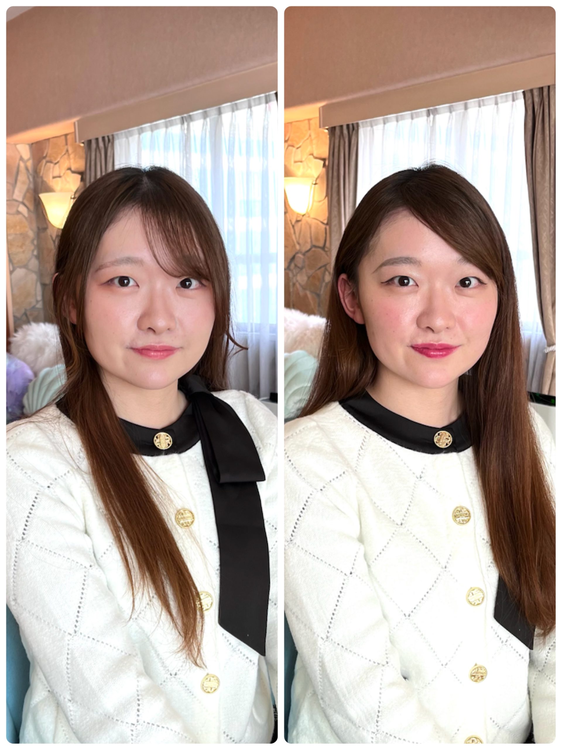 元々のメイクや髪型ももちろん可愛いですが、この方のパーソナルカラーや顔の骨格表情筋に合わせてメイクをすることで更に美しさに磨きがかかったのではないでしょうか🎉🫣